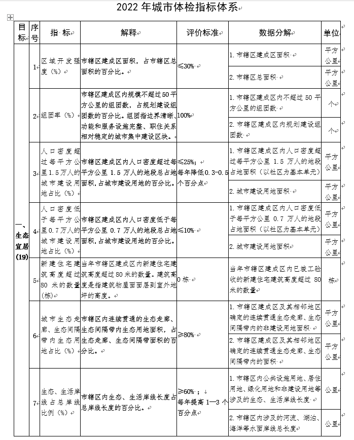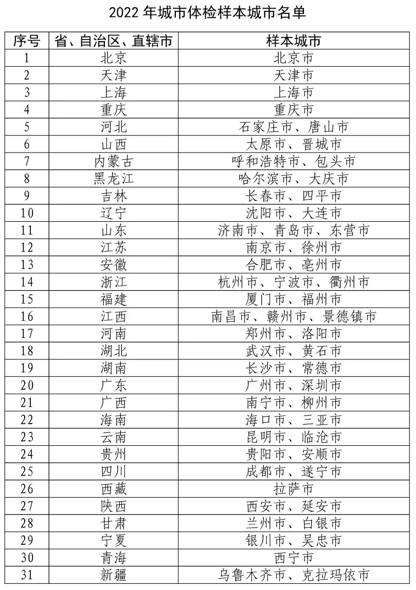 為深入貫徹習近平總書記關(guān)于建立城市體檢評估機制的重要指示精神,落實中共中央辦公廳、國務(wù)院辦公廳印發(fā)的《關(guān)于推動城鄉(xiāng)建設(shè)綠色發(fā)展的意見》部署要求,經(jīng)協(xié)商研究,在歷年城市體檢工作基礎(chǔ)上,決定繼續(xù)選取直轄市、計劃單列市、省會城市和部分設(shè)區(qū)城市(見附件1,以下簡稱樣本城市)開展2022年城市體檢工作。現(xiàn)將有關(guān)事項通知如下: