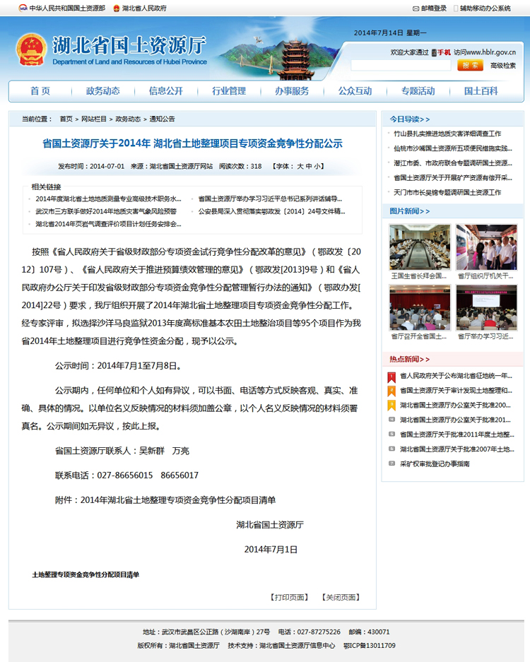 2014年湖北省土地整理專項資金競爭性分配項目清單 |