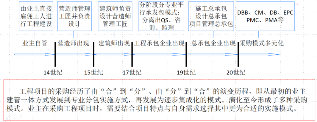 在這一演變過程中,業主的決策權不斷被削弱,外部機構由工作責任不獨立(為業主提供服務與支持,但不需要承擔決策責任)發展為不完全獨立(業主管理的必要補充),進而發展為責任基本獨立(代表業主實施管理)。對工程項目的管理由“建管合一”逐步發展為“建管分離”。