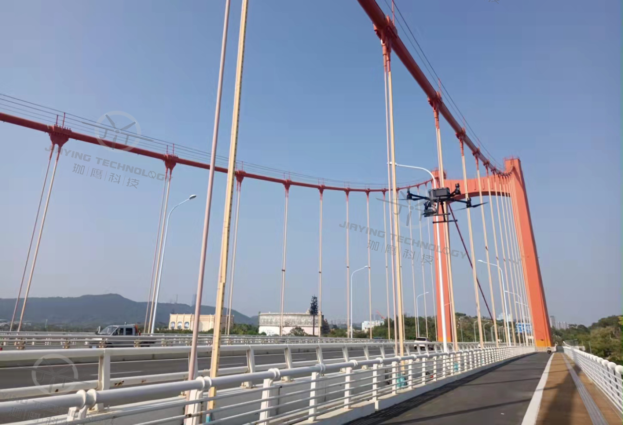 珈鷹根據這座斜拉索大橋所處的位置環境選擇了適合的無人機型號和載荷,進行必要的調試與檢查。采用多源數據融合的方法,攻克了衛星信號盲區這一難題,進而可對橋梁底部、橋墩、支座、側面、橋塔、橋索等部位的外觀進行全面高清圖像采集。