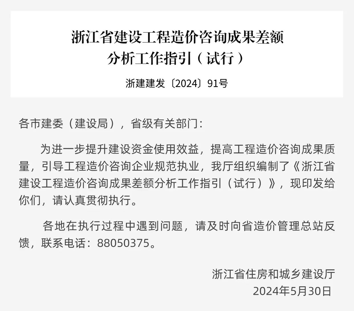 浙江省建設廳關于印發《浙江省建設工程造價咨詢成果差額分析工作指引(試行)》的通知