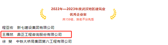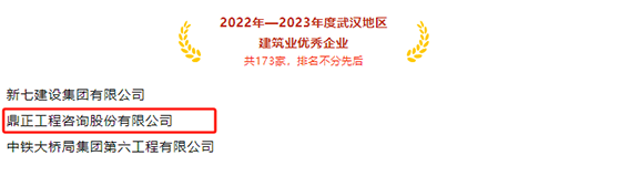 11月21日,武漢建筑業(yè)協(xié)會(huì)正式公布“2023年度武漢市最具成長(zhǎng)性民營(yíng)建筑企業(yè)”、“2022-2023年度武漢地區(qū)建筑業(yè)優(yōu)秀企業(yè)、優(yōu)秀企業(yè)家、優(yōu)秀總工程師、優(yōu)秀項(xiàng)目經(jīng)理”兩項(xiàng)評(píng)選結(jié)果,鼎正連續(xù)上榜,斬獲多項(xiàng)行業(yè)榮譽(yù)!