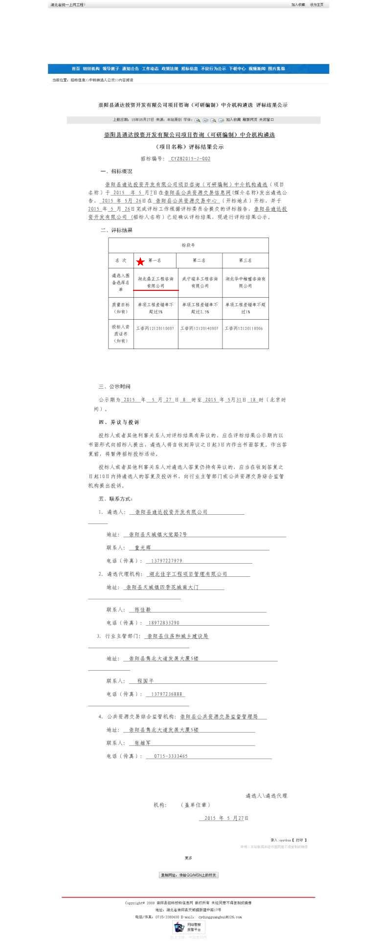 【經(jīng)營成果】我司入圍崇陽縣通達投資開發(fā)有限公司項目咨詢(可研編制)中介機構(gòu)庫
