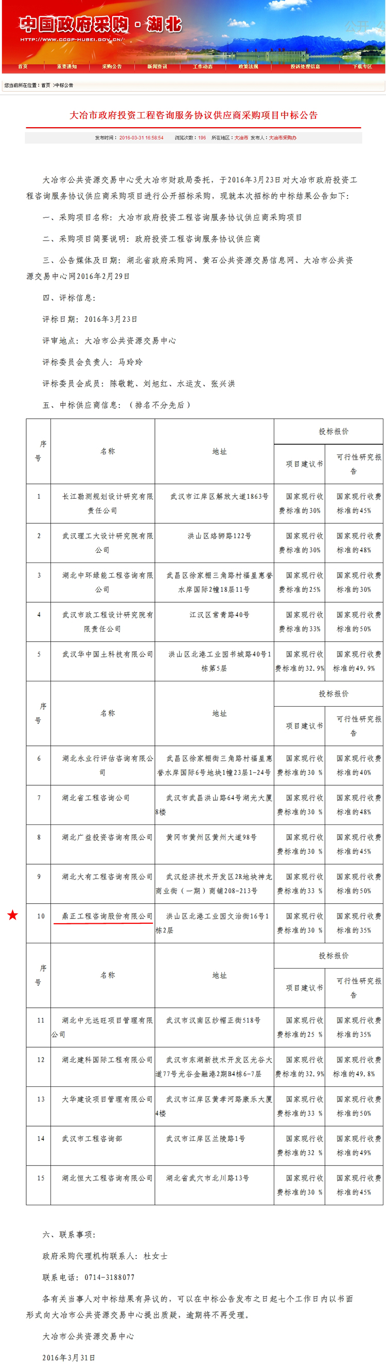 【經(jīng)營成果】我司中標(biāo)大冶市政府投資工程咨詢服務(wù)協(xié)議供應(yīng)商采購項(xiàng)目