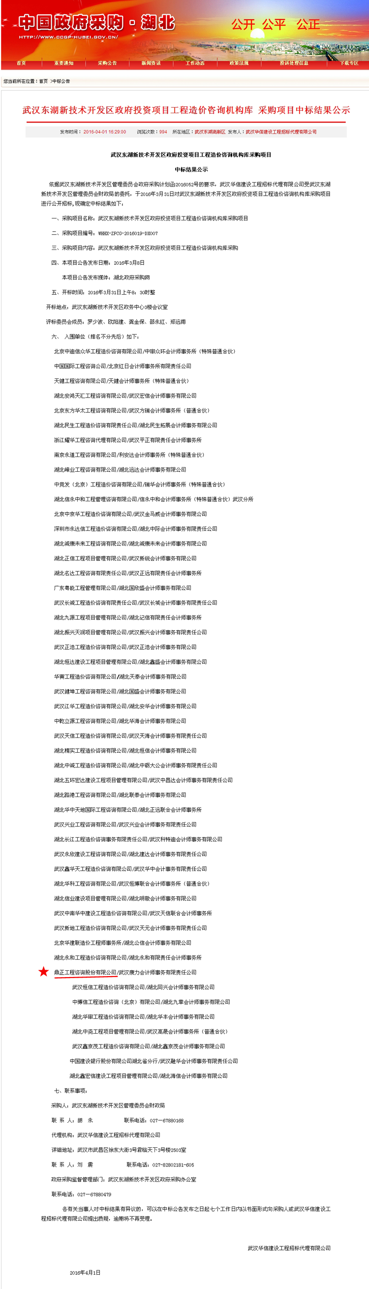 【經(jīng)營成果】我司入圍武漢東湖新技術(shù)開發(fā)區(qū)政府投資項目工程造價咨詢機構(gòu)庫