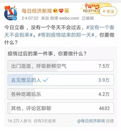 今天,2020年2月14日,一個(gè)特殊的情人節(jié)!想從一個(gè)近期的網(wǎng)絡(luò)投票說(shuō)起:“疫情過(guò)后的第一件事,你要做什么?”