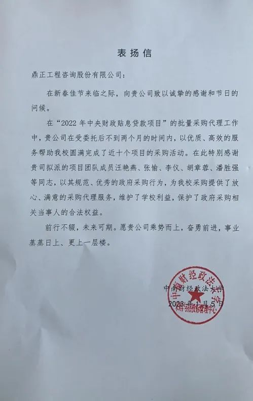 時間緊、任務重是本項目的重點和難點,自項目承接以來,鼎正招標采購服務團隊,一直秉承“為項目提升價值,為客戶實現價值”的企業使命,在受采購人委托不足兩個月的時間里,完成了近十個項目的政府采購。由于政府采購過程中可能存在各種不確定因素,從而導致采購發生延期或者重新采購的情形(如:潛在供應商不足、有效供應商不足3家、質疑投訴等)。為了有效控制和規避采購風險,在項目策劃階段,項目組通過以往積累的經驗以及受托項目的實際情況,對項目進行風險評估分析,及時研判出可能存在的風險,并制定出相應的防范措施,為項目順利推進保駕護航。在項目實施階段,項目組通過編制合理科學的采購文件、在法律允許的范圍內溫馨提示供應商相關投標注意事項、積極真誠地回復供應商的詢問、嚴謹合理合法地處理供應商質疑,最終順利完成采購人的委托,并收獲了業主發來的表揚信。