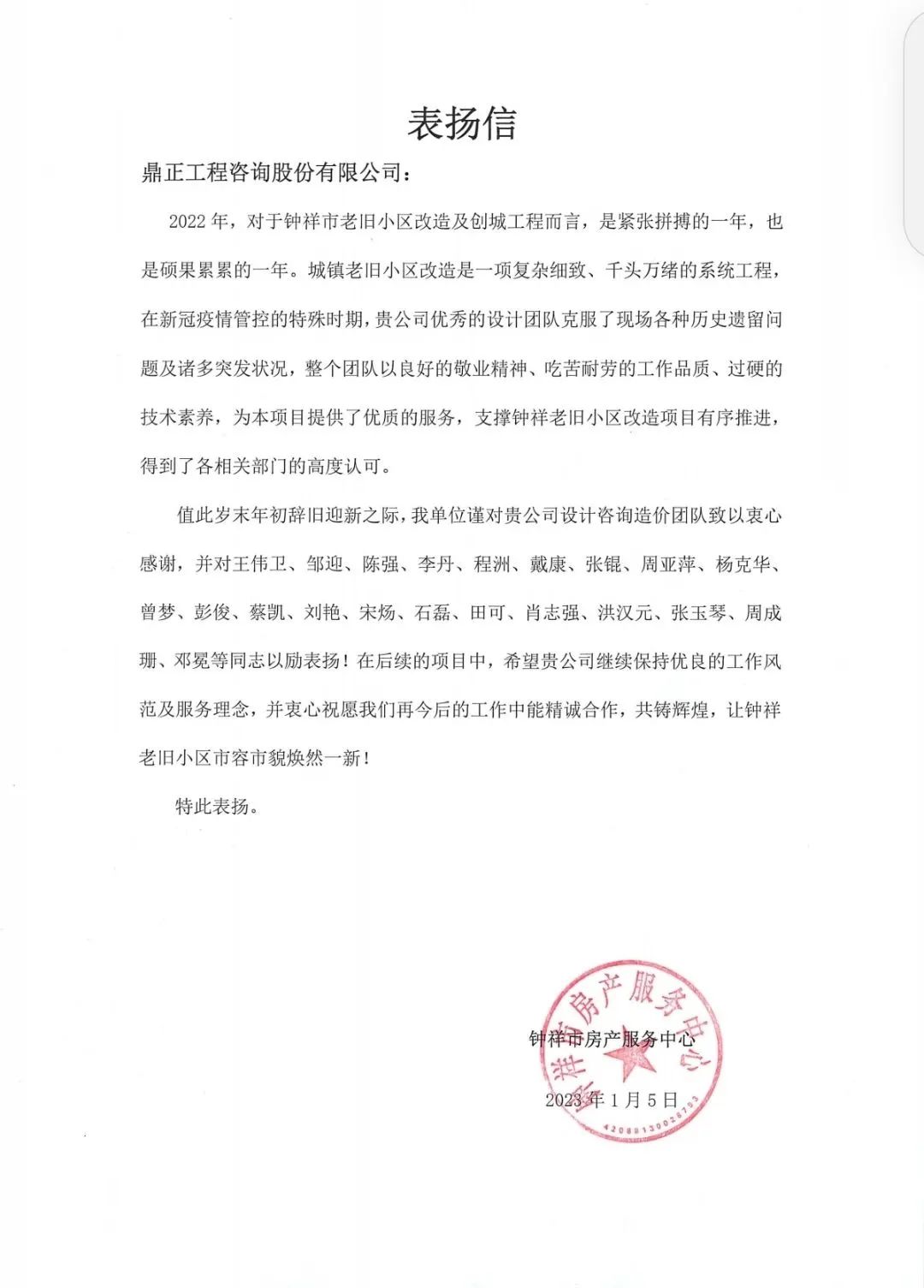 鐘祥老舊小區改造項目是一項群眾關注極高的民生工程,也是創建全國文明城市、推進城市更新的重要抓手。鼎正作為該項目的設計咨詢單位,為項目提供全過程伴隨式服務,從項目全生命周期、建設單位角度替業主出謀劃策,包括項目立項、項目建設、項目審計的每一個程序提供指導,并高質量地完成了項目相關報規報批節點,獲得了項目各方單位的一致好評。圍繞項目的投資控制、設計變更、工程進度、質量控制等問題,我們多次委派專家、技術總工到場,積極對接各參建單位,主動梳理并解決問題,為建設單位有效決策、項目順利開展提供了有效的技術支持。為保證項目質量,我們抽調多個專業深入施工現場,積極協調各方、及時解決技術難題,做到當天問題,當天回復,確保項目按照工作計劃時間節點完成交付,并得到了業主的認可和好評。