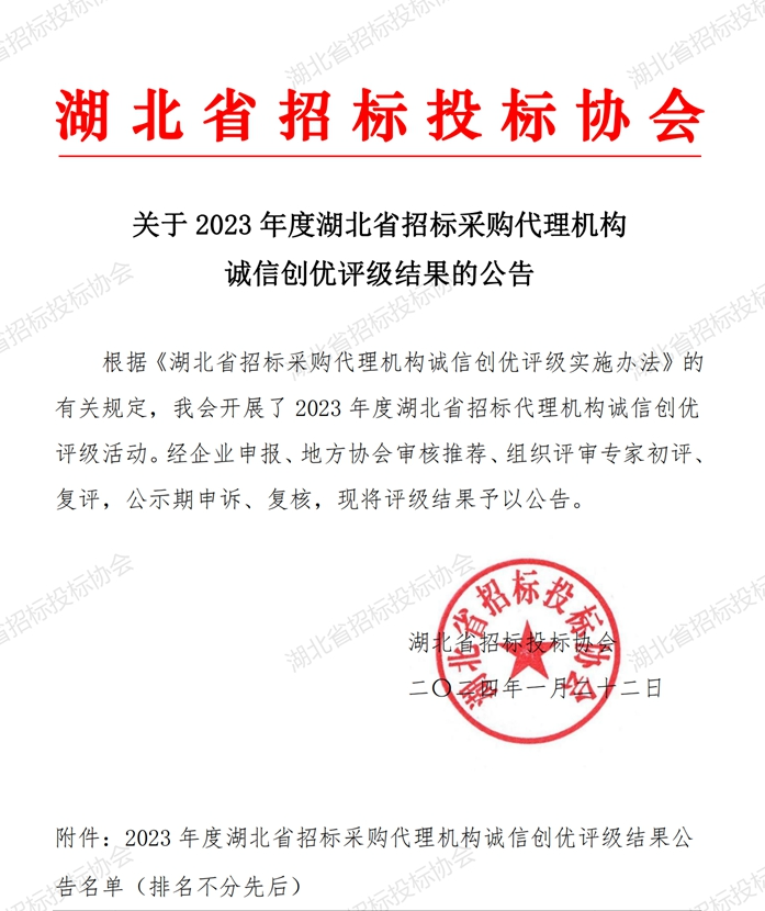 此次評選是湖北省招投標協(xié)會根據(jù)《關于建立完善守信聯(lián)合激勵和失信聯(lián)合懲戒制度加快推進社會誠信建設的指導意見》要求和《政府采購招標代理機構(gòu)管理辦法》及相關法律法規(guī)規(guī)定,按照“自愿、公開、公平、公正、非營利”原則,在會員單位內(nèi)開展“湖北省招標投標行業(yè)招標采購代理機構(gòu)誠信創(chuàng)優(yōu)評級”活動。
