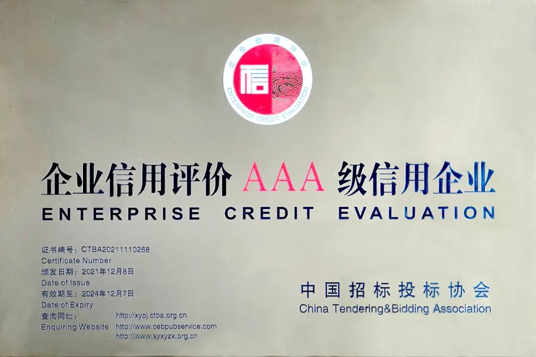 企業(yè)信用等級是企業(yè)發(fā)展過程中信用形象的重要標志,也是企業(yè)參與市場競爭的一項重要的無形“資產(chǎn)證”。在國家持續(xù)深入推進“放管服”改革,進一步優(yōu)化營商環(huán)境,取消資質(zhì)審批、加強信用管理的新形勢下,鼎正在眾多參評企業(yè)機構(gòu)中脫穎而出,獲評AAA信用等級榮譽。